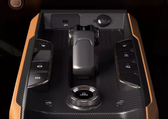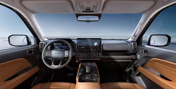 进入车内,猛龙继承了二代大狗的设计风格,中控台配备12.3英寸全液晶仪表和14.6英寸中控彩色屏幕。搭载坦克300同款的电子排挡,形态酷似坦克控制杆,贴合手掌的握感,提供出色的操控体验。副驾驶位还设有造型丰富的越野把手,结合硬派造型和时尚感,使内饰设计更具质感。