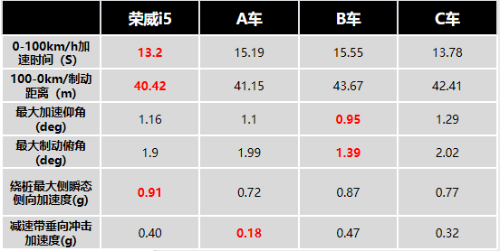 全新荣威i5在客观测试项目中表现均衡,测出了最好的加速能力和最短的制动距离。