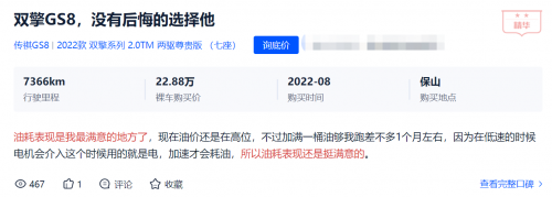 ▲GS8车主口碑截图-油耗表现