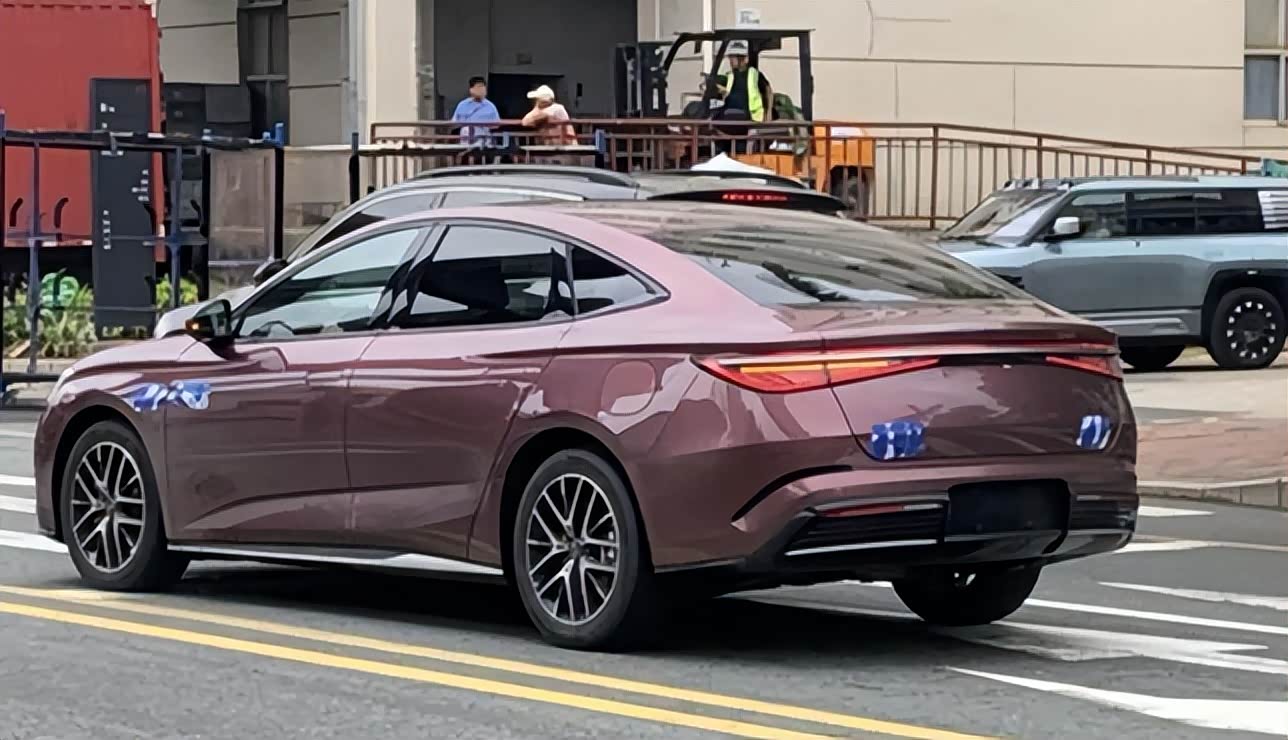 侧面看起来非常的动感,造型很低趴,溜背式的设计以及以及隐藏式的门把手设计都非常的亮眼,长宽高分别为4980mm/1890mm/1495mm,轴距为2900mm,比海豹大了一圈,尺寸更接近汉;尾灯采用时下流行的贯穿式设计,并采用点阵式光源,后备厢边缘设计了扰流造型,很有层次感。