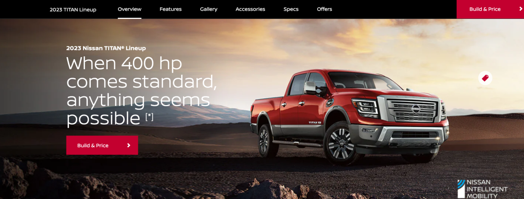 TITAN是日产北美推出的全尺寸皮卡车型,该车型诞生于2003年,当时凭借霸气的外观造型以及超强的动力表现,在北美皮卡市场中取得不错的表现。2015北美车展上,全新一代TITAN皮卡正式亮相,该车搭载5.0T V8柴油发动机,最大功率310马力,峰值扭矩752牛·米,匹配6速手自一体变速箱。此后,该车型新增5.6L V8发动机,最大功率396马力,峰值扭矩534牛·米,匹配7速自动变速箱。