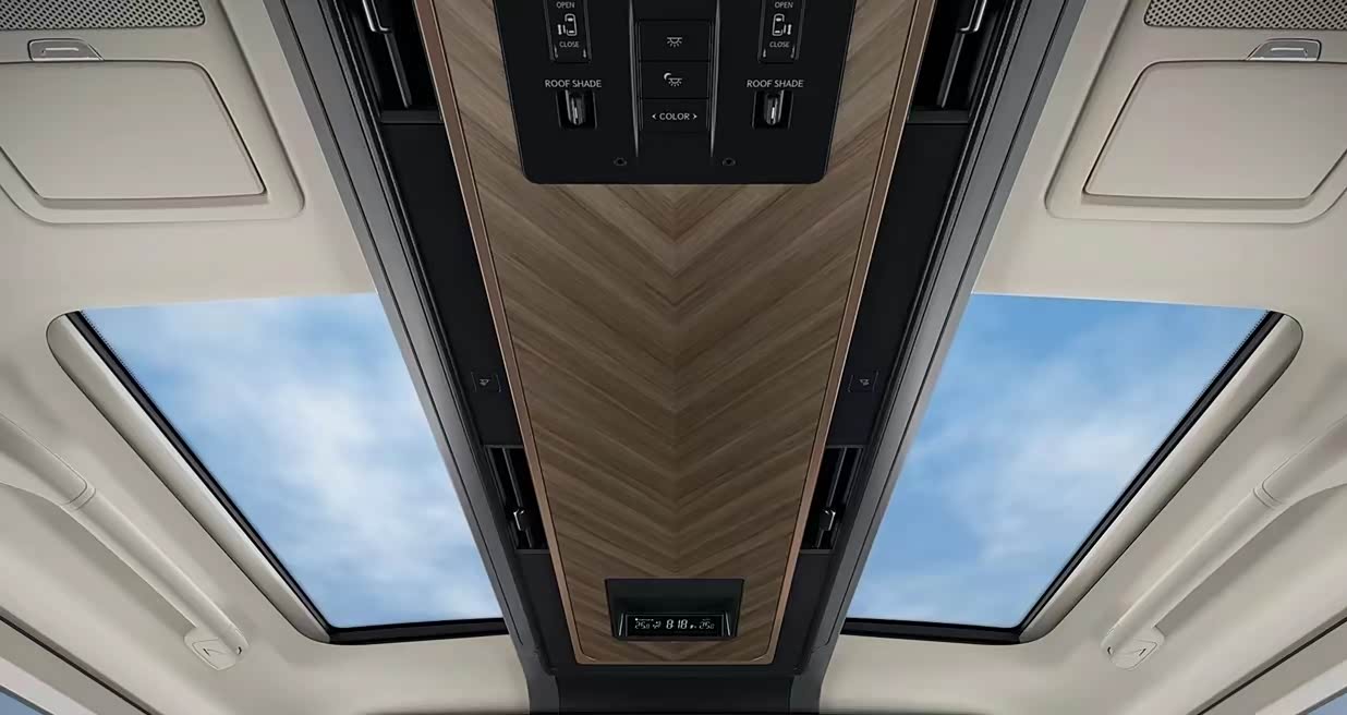 车内方面,LM 350h七座隽雅版和LM 500h六座尊崇版注重为乘客营造良好的车内视野与宽敞空间感,采用尊贵左右独立式天窗设计满足不同的采光需求。