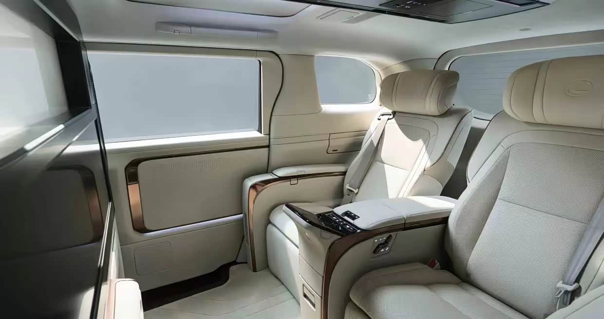 LM 500h四座御世版则更加注重后排乘客的个性化与私密性需求,配备了中式屏风的旗舰级尊享私密屏窗,并嵌入48英寸宽屏显示器,支持多种显示模式,提供多元化场景需求。车内静谧性得到显著提升,通过优化车身设计细节、调校噪音源和振动源以及吸音、隔音和减振材料的应用,打造富有自然感的声场空间。座椅和控制系统的细节设计得到全面优化,后排乘客享有礼宾私享助理和矩阵式红外温度探测器等专属配置,提供舒适宜人的乘坐体验。