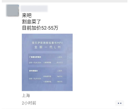 上一代雷克萨斯LM最早于2019年在上海车展首发亮相,随后在2020年国内上市,售价区间为116.6万—146.6万元,但终端一直需要加价才能提车。而全新雷克萨斯LM刚上市就曝出需要加价52-55万元,由此可见这款车的热度依旧不减。