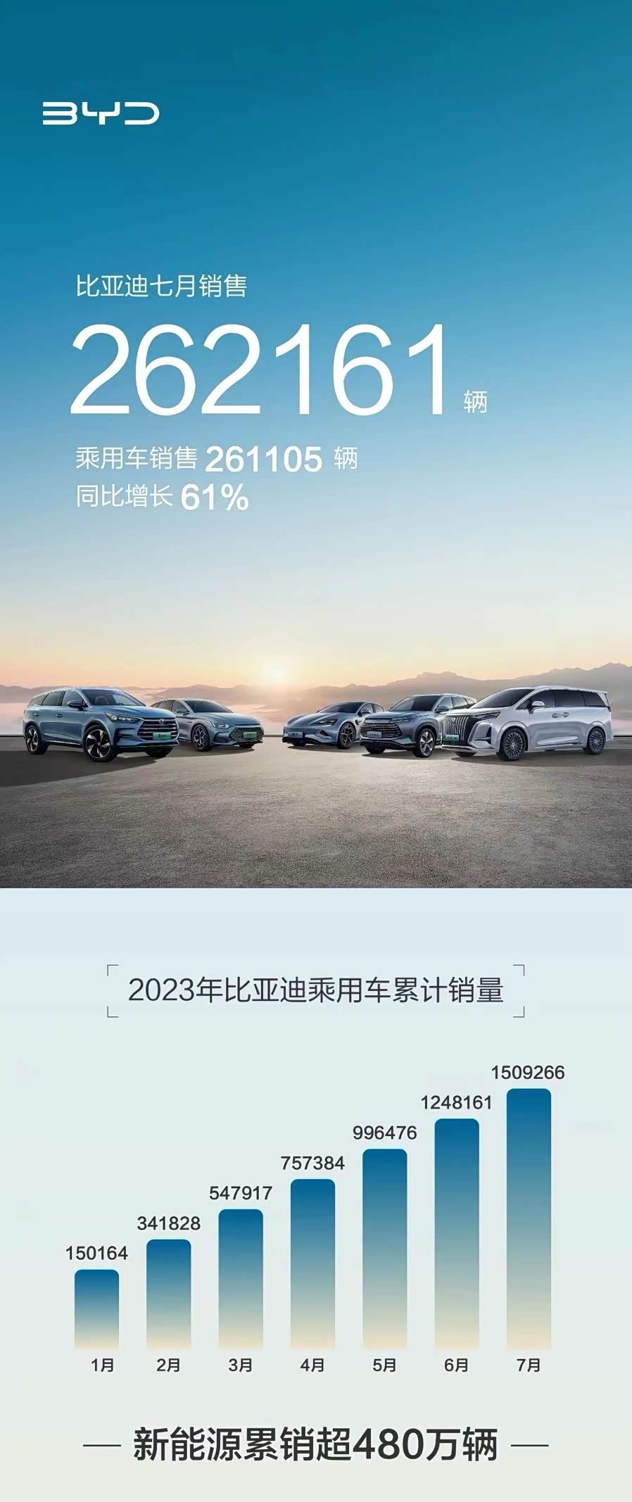 有了技术储备的支撑,比亚迪已经构建了强大的品牌矩阵,旗下王朝、海洋、腾势、仰望、方程豹等品牌,覆盖了从家用到豪华、从大众到个性化的全领域,满足用户多方位、全场景用车需求,得到了消费市场的广泛认可与肯定,市场表现一路攀升。继今年6月创下月销25.3万辆的销量最高纪录之后,7月份,比亚迪以261105辆的单月销量成绩再创新高,新能源汽车中国销冠、全球销冠的地位愈加稳固。