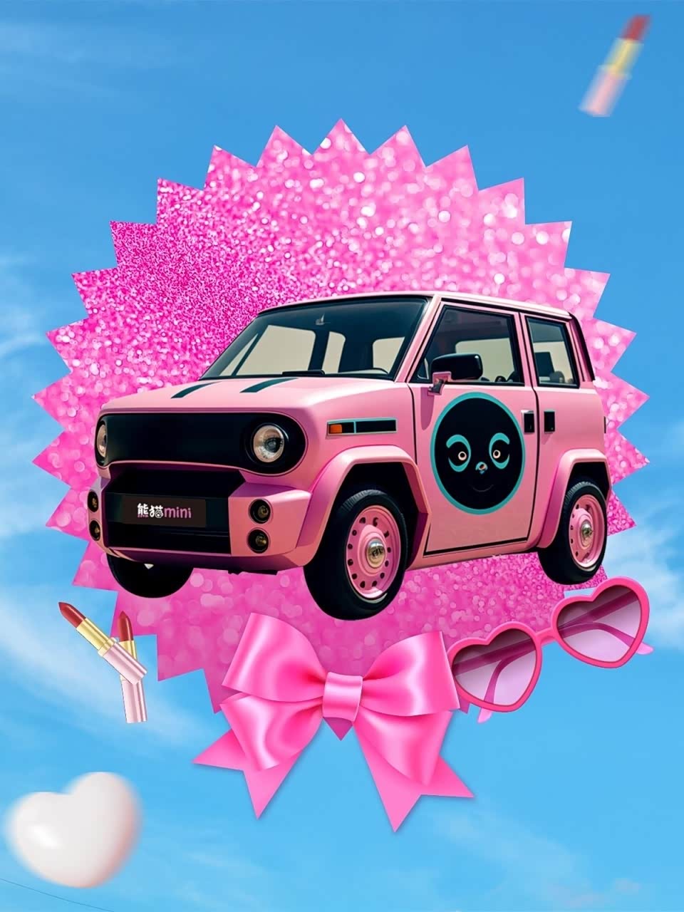 街拍名车:吉利几何熊猫mini,“芭比粉”小公主梦幻之车!