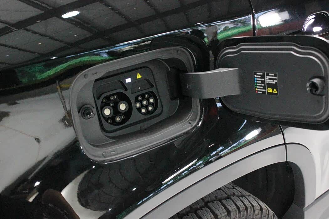 从尾部看上去,方正的尾部造型给人越野的既视感,而尾部右侧设计了充电接口,支持快慢两种充电方式。