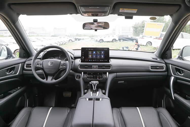 来到车内,本田UR-V的内饰也是以居家环绕为主,中控台在用料方面为皮质和饰板的结合,悬浮式的多媒体显示屏为10.1英寸,支持车载蓝牙电话、手机互联等功能,下方为常用的空调面板,方向盘为三幅式多功能方向盘,在把握上手感饱满。