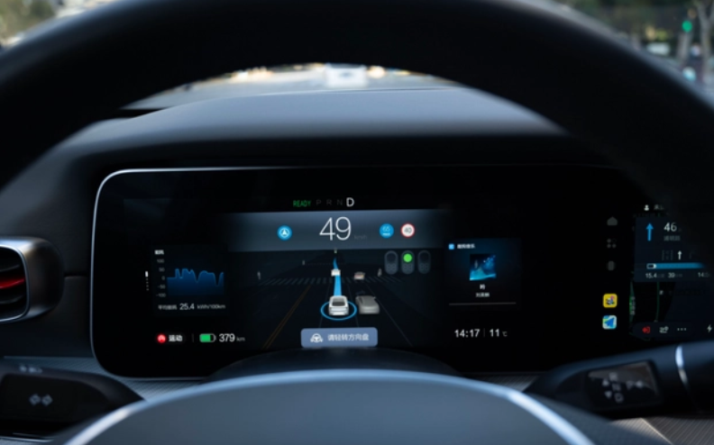 反观极狐阿尔法s 先行版,首先设定导航目的地,当车辆行驶到满足条件的路段,主驾仪表盘上会出现一个特定的标志,这时候只需将换挡杆向下连续拨动两次,车辆立刻进入到城区NCA状态,这时系统就会完全接管车辆。