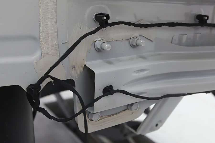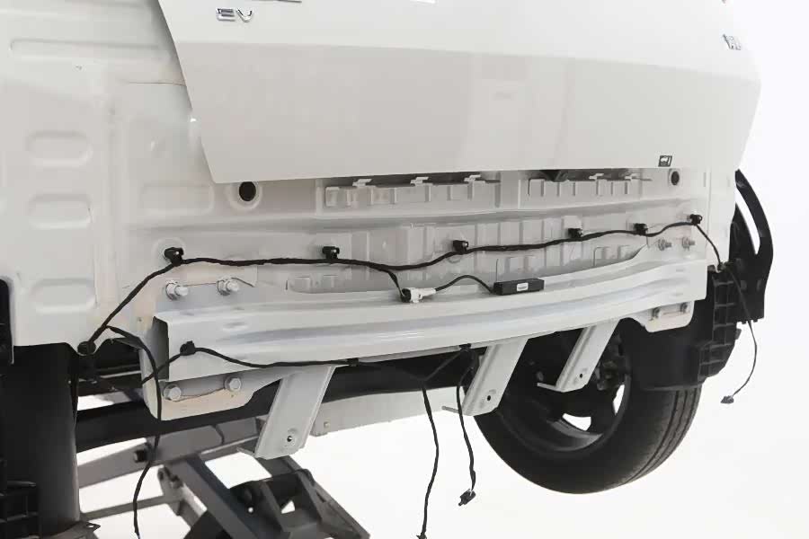 这辆车同样没有后吸能盒,后防撞梁直接安装在后尾板上。