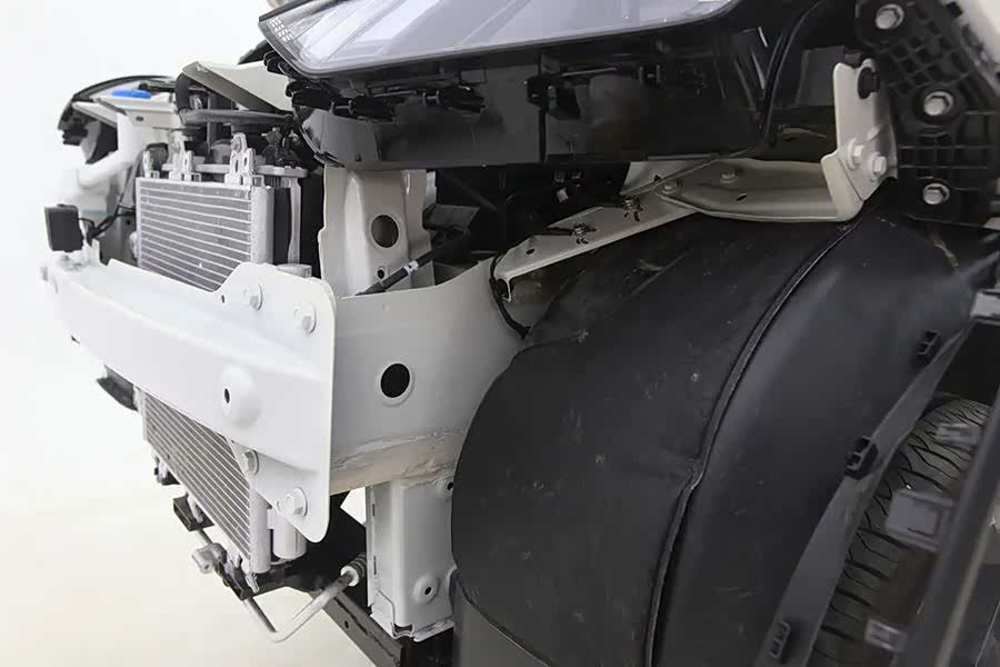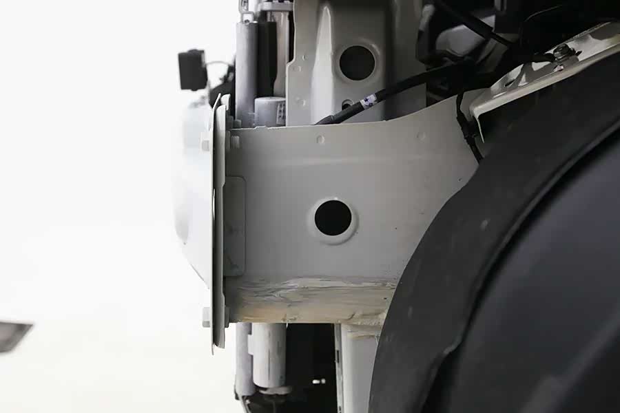 这辆车没有前吸能盒,如果发生碰撞,纵梁会直接受到冲击。