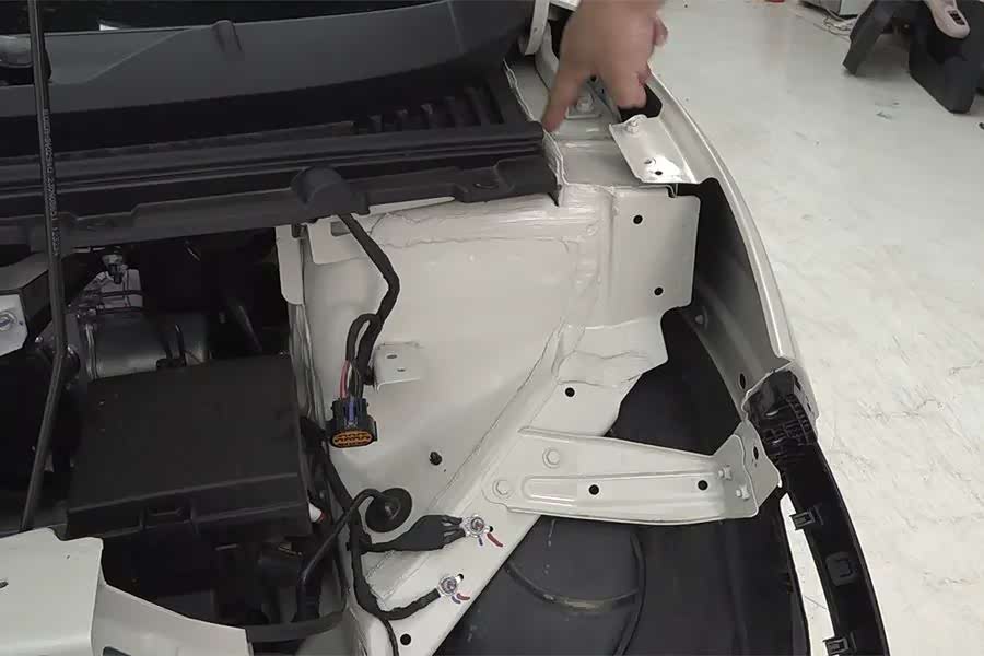 前防撞梁和保险杠之间,没有缓冲泡沫。