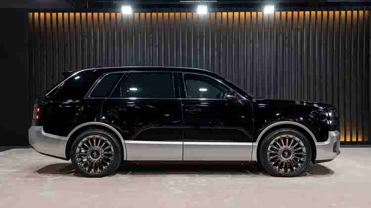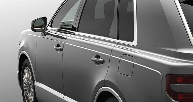 为了展示豪华感,新车使用了双色涂装方式,不过与传统双色涂装不同,世纪SUV双色涂装分割线是裙线,而传统双色车身的分割线是腰线,例如迈巴赫S级。