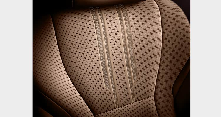 内饰细节方面,座椅使用了日式“菅绣”缝合工艺,装饰面板使用”本杢面板“技术,木材与铝版贴合,激光加工技术切削木材表面,使得下层铝呈条纹状露出。