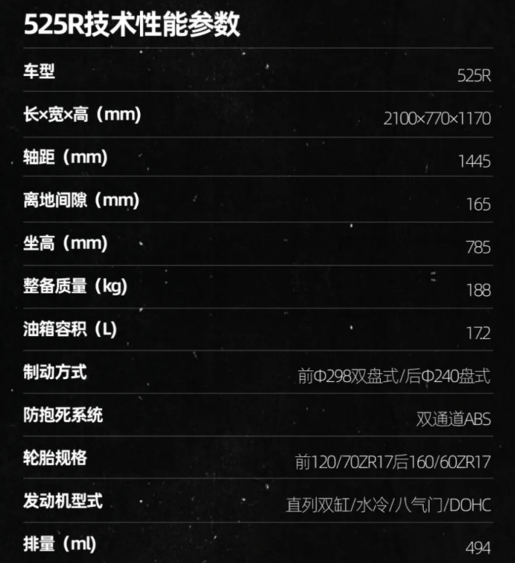 隆鑫无极525是一款运动街车,搭载了KEL525并列双缸八气门水冷发动机,最大功率39.6kW(53匹马力),最大扭矩50.5N·m,还配备了滑动离合器和热管理系统。近日,隆鑫无极官方宣布,该车全系官降3000-6000元,售价区间为3.99-4.59万元。