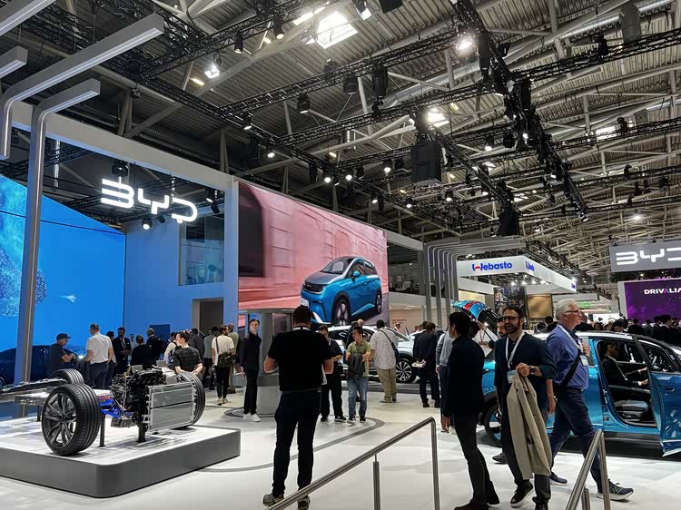 2021年法兰克福车展搬到慕尼黑,今年车展传统燃油车企的日本和美国车企少了一大半,全靠中国车企撑起半壁江山,而今年又有中国新能源汽车登陆欧洲,比亚迪、奇瑞、长安、广汽、阿维塔、零跑、赛力斯、名爵、小鹏和东风柳汽,加上吉利集团旗下的路特斯和极星,占了整个车展品牌的三分之一,比亚迪携“海豹、宋 PLUS EV 冠军版、元 PLUS、海豚、汉、 腾势 D9”这 6 款新能源车亮相,展台也是展场最大面积的品牌,今年比亚迪要完成300万辆的销售目标,海外市场也是重点, 8月份比亚迪销量为274086辆,同比增长57.5%,1-8月份累计销量1783352辆(接近完成年终目标的60%),其中出口占25023辆,同比增长37%,1-8月累计出口量为117481辆,电池出货数为13.928GWh。