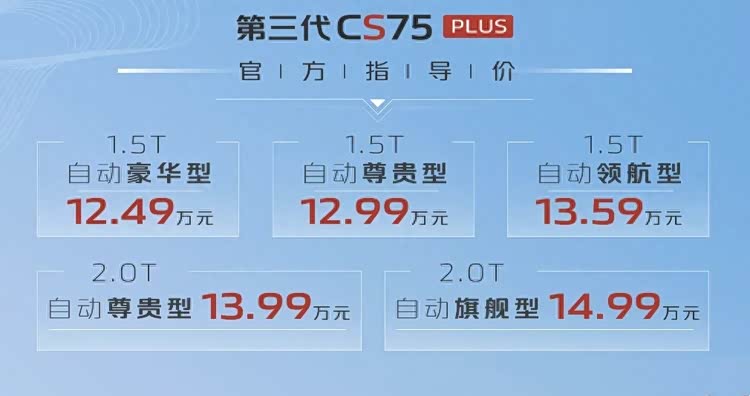 配图为:2023款 第三代长安CS75 PLUS 1.5T 自动尊贵型