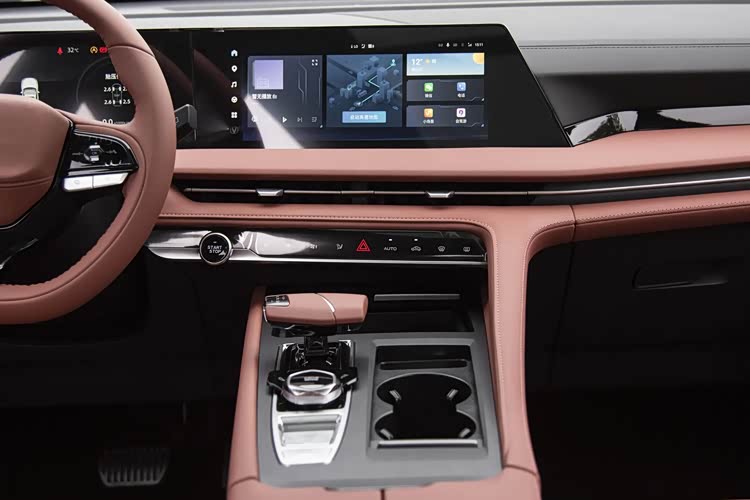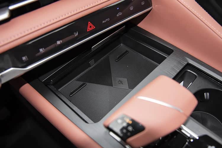 挡把前方布置有手机无线充电面板、触摸式空调控制面板。