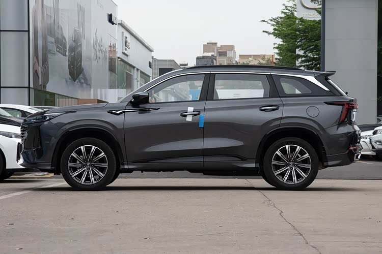 来到车身侧面,新车侧面造型具备较好的时尚感与力量感,并且车窗外沿、车顶行李架、前翼子板后方装饰件、侧裙、轮眉等处还进行了熏黑处理。此外,新车还全系标配了19英寸轮毂,轮胎规格为:225/55 R19。