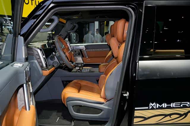 内饰方面,整体上就没有像外观设计的那么张扬,但是在内饰用料和配置上可以说是豪华与科技并存的机甲风格。多功能机甲换挡把集成了换挡、底盘升降、越野模式这些主要功能,既有创新也满足了实用性。其次充满科技感的全液晶仪表盘、中控屏、副驾娱乐屏、HUD抬头显示的联动,并且搭载了最新的骁龙8155车机芯片来保证流畅运行。此外还拥有5G远程智联、蓝牙钥匙、车辆状态监测、遥控泊车等功能。同时还具备远红外夜视系统、涉水感应系统等硬核装备。
