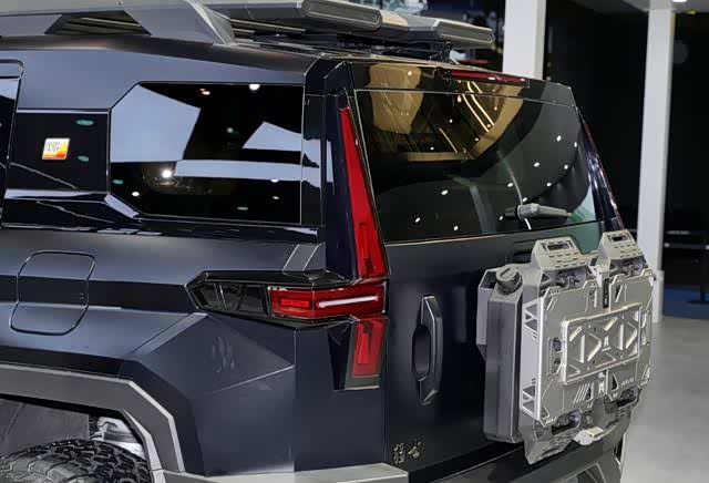 车尾则保留了猛士标志性的十字形尾灯,并采用了硬派越野必备的侧开式后尾门和“小书包”式外挂备胎,让人一眼就能认出这是一台硬派越野车。