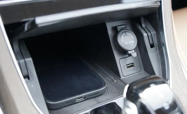 蓝电E5在换挡区域前方设计了一个储物格,内部可以存放手机,并且配备了无线充电功能。这个设计使得前排乘客可以方便地存放和充电手机,提供了便利性和实用性。此外,还有一个USB接口和一个点烟器接口,满足了前排乘客的充电需求。这些接口的设置使得前排乘客可以随时为自己的电子设备充电,增加了便利性和多样性。这些细节的考虑确实提升了蓝电E5的实用性和用户体验。储物格的设计和无线充电功能,以及USB接口和点烟器接口的配置,使前排乘客能够方便地存放和充电手机,满足他们在行车过程中的充电需求。