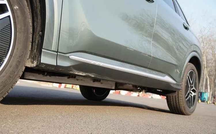 蓝电E5的车身侧面除了采用平直的腰线外,还设计了一条硬朗的线条,延伸至门板下方,进一步增加了车身侧面的层次感和光影效果。此外,硬朗线条还运用在轮眉等位置,使整个车身侧面充满力量感。这样的设计细节使蓝电E5的外观更加精致、动感。