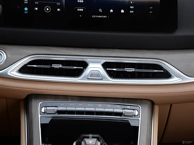蓝电E5在空调出风口下方设计了一排空调控制按键,这样驾驶者可以更方便地进行空调调节。此外,中控大屏内也提供了对空调系统的操作功能。尽管中控大屏可以完成相同的功能,但实体按键的设计使得驾驶者可以更直接、快速地进行空调调节,提高了操控的便捷性。驾驶者可以根据个人需求,直接触摸按键进行空调温度、风速等的调节,而不需要在大屏幕上进行多次操作。这种设计考虑到了驾驶者的操作习惯和便捷性,让空调调节变得更加直观和快速。驾驶者可以更专注于驾驶,同时方便地调整车内的舒适度。