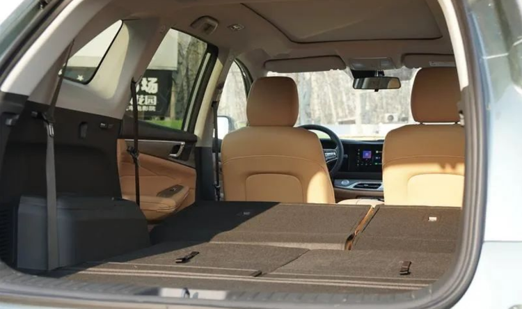 第三排乘坐舒适性一般,但对于这个级别的七座SUV而言,第三排空间算是宽裕的,身材不是特别高大的成年人,在第三排也能够比较从容的坐下,而且整个的头部空间和第二排之间并没有差异。另外第三排座椅坐姿明显更低,有点蹲在小板凳上的感觉,与其预留这么大的头部空间,不如把第三排座椅坐姿提高一些,这样乘坐感受也会舒服一些。当然对于大多数用车场景下,7座SUV的第三排基本上都是闲置的,能够应急使用就足够了。