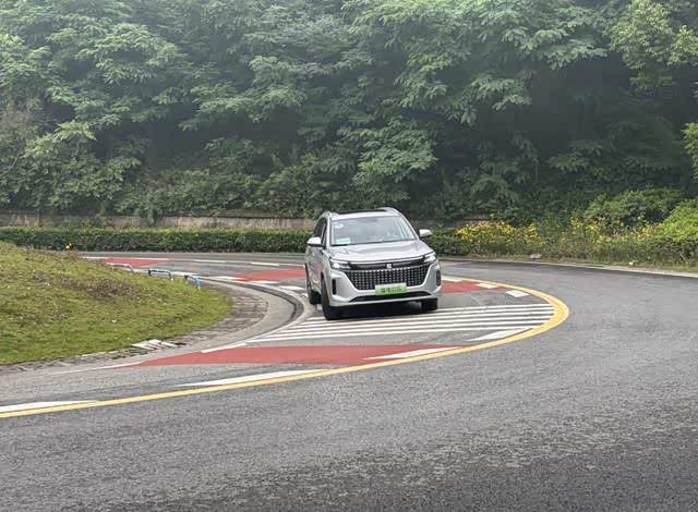 当速度超过50码时,前桥也没有明显的冲击和余震。第二排乘坐时可能会感觉到一些,而第三排乘坐时则更加明显。此外,在驶过破损或颠簸路段时,车身姿态和声音的反馈较为平缓,给人一种质感和舒适感。在较为缓和的波浪路上,蓝电E5的车身起伏也很放松。在经过弯道时,驾驶员座椅对身体包裹较强,不会感到明显的侧倾。