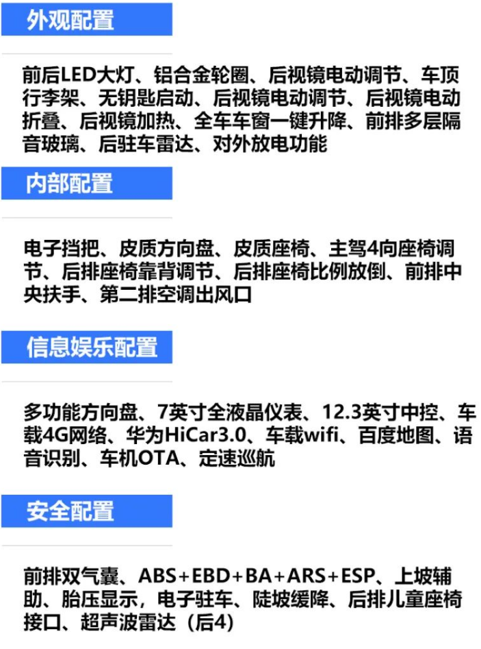 蓝电E5车型在全系标准配置中提供了皮质座椅和皮质方向盘,还配备了12.3英寸中控屏和7英寸全液晶仪表,这些配置提升了整体的档次感。此外,蓝电E5全系标配了一些智能配置和辅助驾驶功能,如语音控制、百度地图、华为HiCar3.0、车载4G网络、车机OTA和定速巡航。即使选择低配车型,车主仍然可以享受到不少智能配置和辅助驾驶功能。蓝电E5具备目前主流的智能配置,低配车型的配置也非常不错,对消费者来说很友好。除了这些优点,蓝电E5还是一款插电混动新能源车型,不仅续航能力可靠,燃油经济性也优于同级别的燃油车型。
