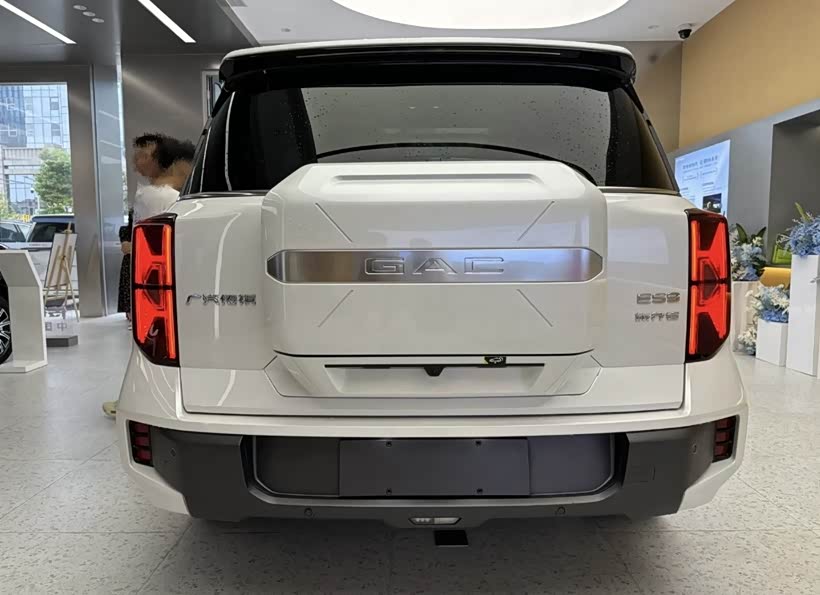 车尾部分,虽然广汽传祺ES9旅行者的“小书包”并非是真正意义上的外挂式备胎,但也算是让其尾部多了几分硬派越野属性。此外,对向翻折的竖向尾灯,加之宽大且厚重的后包围,还能呼应前脸的大气属性。