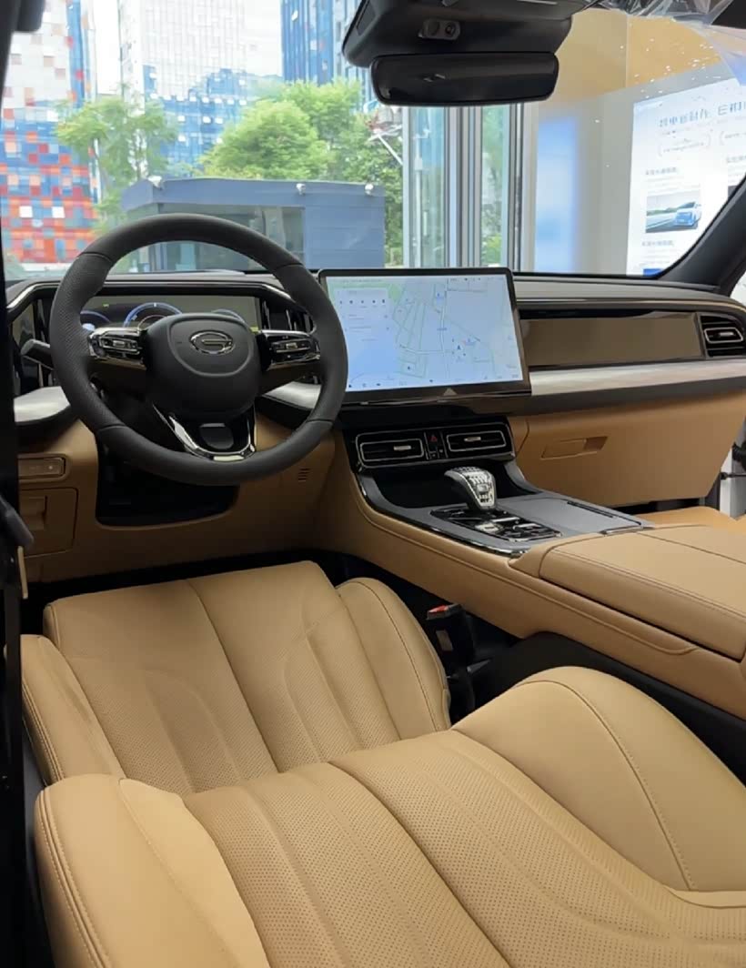 内饰部分,广汽传祺ES9旅行者基本延续了现售全新一代GS8的设计。其14.6英寸的全液晶仪表与12.3英寸的悬浮式中控屏的组合,搭配“蝰蛇”样式的电子挡把,可将其车内的科技氛围带到最大化。而黑/棕色拼接的铺陈形式,则带来了不少高端化设计质感。据悉,新车还将搭载支持AI语音控制、手势识别、人脸识别等主流功能的ADiGO4.0多媒体系统。