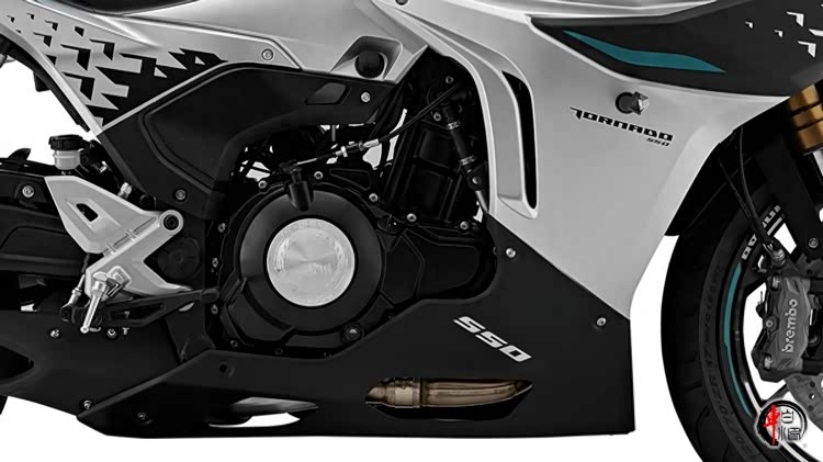◆ 外观配置 新款Tornado 552R外观设计整体延续了早先亮相的概念版车型,在车头部分和整流罩上采用了全新的设计,透明整流罩也是近来比较流行的款式,车身侧面整流罩的线条相比系列其他车型更具层次感,视觉上营造出了极强的速度感。