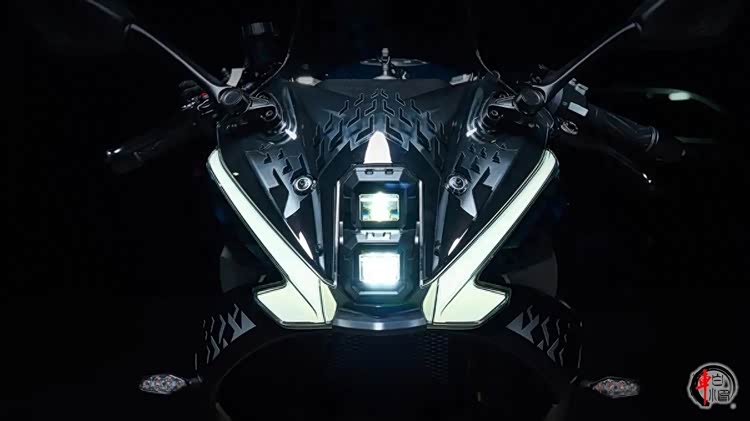 全新设计的前脸造型,透明整流罩内部镂空设计了与日行灯相似的造型,灯光系统采用了欧洲目前比较流行的上下布局的头灯造型。对称式日行灯与整流罩衔接视觉效果非常独特。仪表似乎采用与钱江赛系列完全相同的全彩仪表,支持车机互联,USB充电等功能。