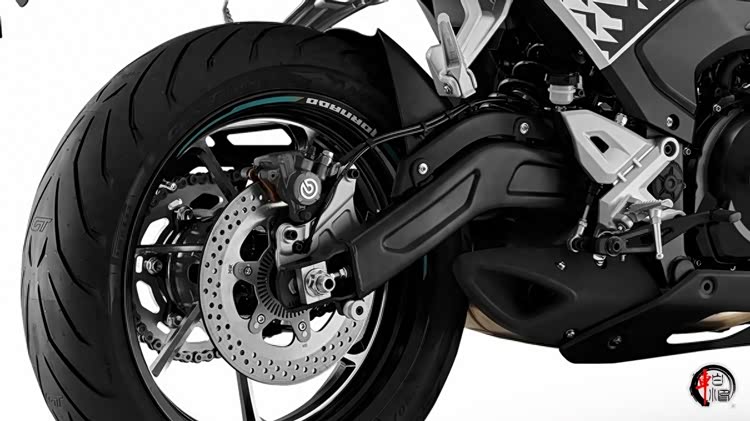 ◆ 底盘硬件 车架部分也采用钱江赛系列的钢制框架结构,以及后摇臂部分具有很高的相似度。为满足不同身高骑手的需要同步推出了高低坐版本,790/810mm座高,整备质量186公斤,油箱容量15升。