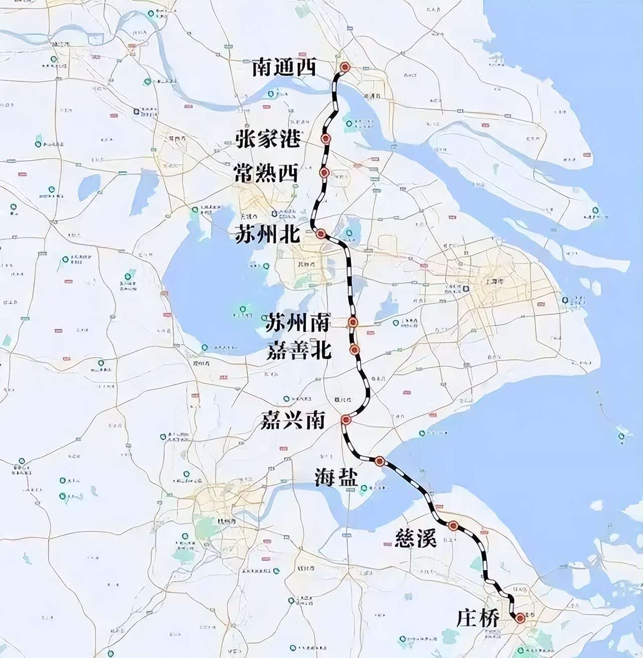 沪苏湖铁路,起自上海虹桥站,途经江苏省苏州市,终至浙江省湖州市湖州站,正线全长约163.8公里,设计时速350公里,设上海虹桥、松江南、练塘、苏州南、盛泽、南浔、湖州东、湖州站等8座车站。