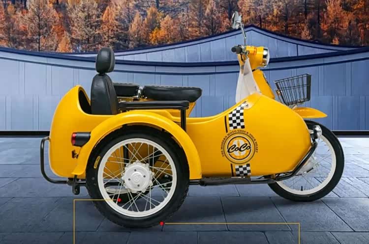 新款在此基础上还融入了前后左右16寸真空轮毂,并配套有前2.50后3.00真空胎。也会有边斗挡风玻璃,汽车级边斗座椅的设计。