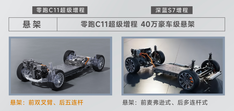 此外,零跑C11超级增程还标配了前双叉臂和后五连杆独立悬挂系统,这在同级别车型中非常罕见。这不仅提供了卓越的驾驶体验,还超越了同级竞品,为乘客带来更加舒适的驾驶感受。