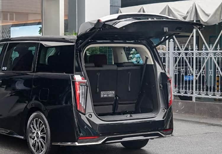 尾部的造型与传祺M8宗师版有些类似,两者都使用了“时空之门”的尾灯,条状的灯带与前车灯形成了呼应。后包围的设计比较简洁,排气管被隐藏了起来,更贴近新能源汽车的设计理念。