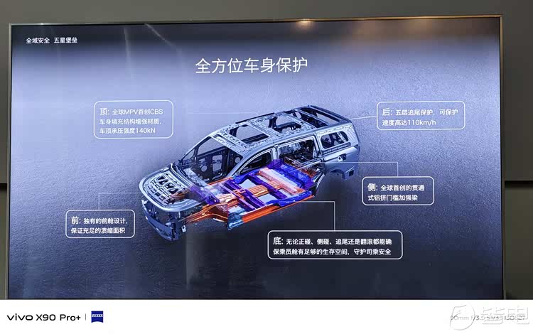 比如五维创新2000MPa超高强度笼式车身,属于新能源MPV五大首创,全球首创2000MPa一体式热成型激光拼焊门环、全球首创2000MPa铝硅涂层车门防撞梁/全球首创贯穿式铝质门槛加强梁、全球MPV首创CBS车身填充结构增强材质、全球MPV首创高压铸铝减震塔。