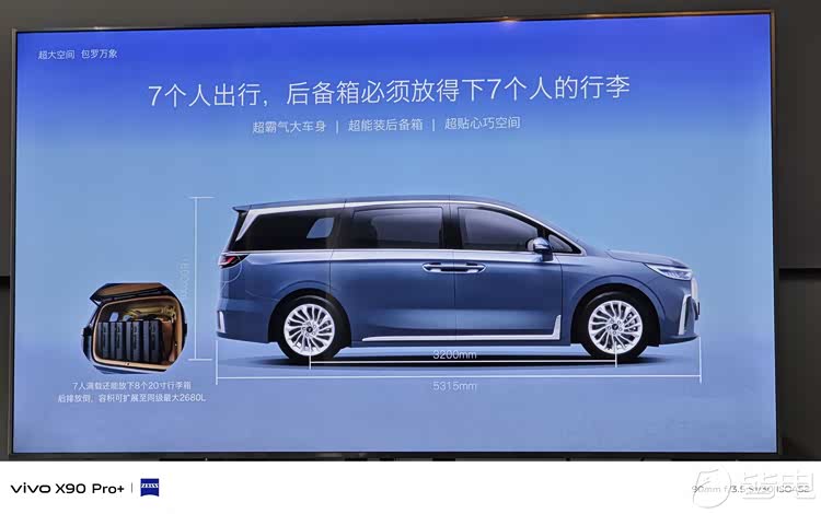 霸气看体量……全新岚图梦想家继承了经典中式豪华车身造型, 保持了长5315mm,宽1985mm,高1800mm,轴距3200mm的霸气车身姿态。7人满载情况下,依旧还有427L超大后备箱,可容纳8个20寸行李箱,全家出行无需调整彼此迁就; 若将后排座椅放倒,可扩展至同级最大2680L后备箱容积,偶尔“运货搬家”毫无压力。