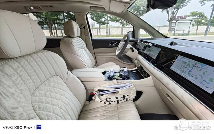 豪华看配置……全新岚图梦想家拥有“套内面积”7㎡的豪华车厢。标配搭载8155车规芯片的4米无界贯通式三联屏,前排标配OEKO-TEX12向电调带通风加热按摩记忆的全功能座椅;二排标配OEKO-TEX头等舱宽适座椅,宽度500mm、14向调节(其中4向头枕)带按摩、通风、加热、记忆、迎宾功能,具备一键逍遥功能,带Type-C 60W充电接口,当然还少不了左右两块小桌板。还全新升级了4.35㎡UItrasuede®仿麂皮顶棚+全域反射式呼吸氛围灯。