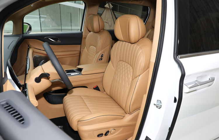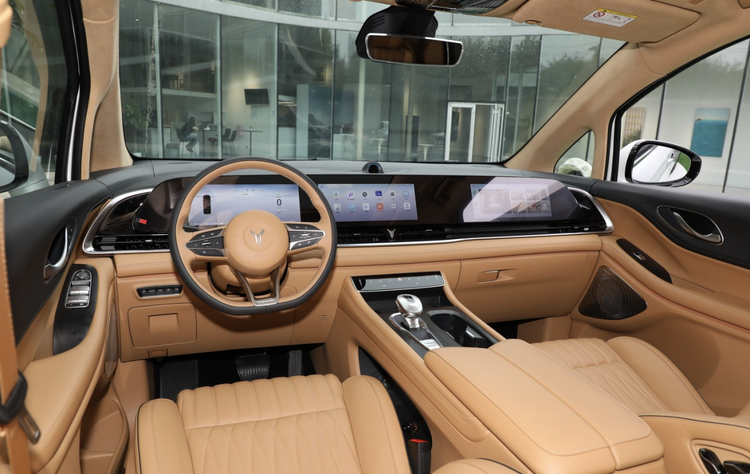 岚图梦想家的外观设计兼顾了家用和商用的审美需求,采用了流线型的车身轮廓和大尺寸的进气格栅,营造出一种低调而不失气势的风格。车身长度超过5.3米,轴距达到3.2米,为乘客提供了充裕的空间。车内采用了高档的真皮、木纹和金属材质,打造出一种豪华而温馨的氛围。第二排座椅配置了通风、加热、按摩、电动腿拖等功能,以及航空头枕和小桌板,让乘客享受到舒适和便利。第三排座椅也可以通过电动调节实现平躺或折叠,增加了后备厢的空间。