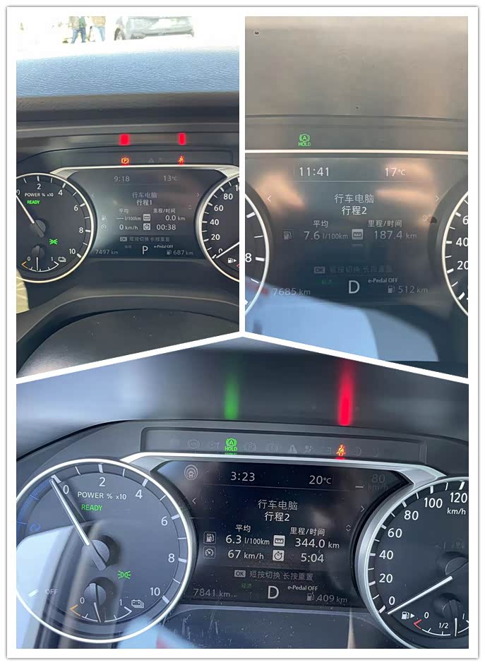 左上为满油初始情况,右上为高速公路急速油耗,下为走完国道后综合油耗