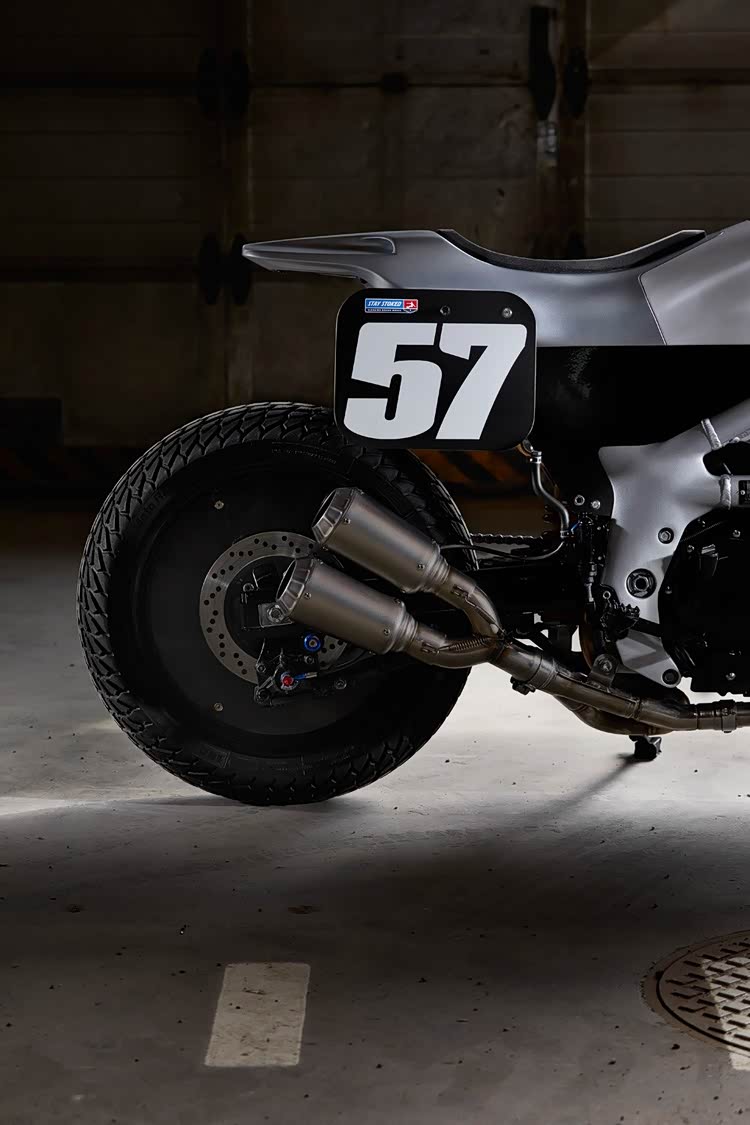 Antti将油箱缩小并重新定位,将其变成了一个放在视线之外的内部燃油电池。然后,他开始从零开始制作新的玻璃纤维外衣,中心部分是一个独特的单体结构,将尾部和油箱盖融为一体。安装这部分后,街头追踪器的氛围已经开始占据主导,但项目的作者才刚刚开始。