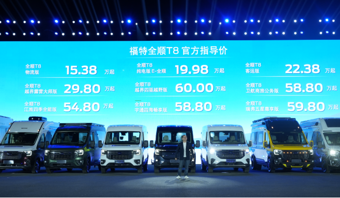 10月15日,江铃福特全顺T8上市,官方指导价15.38万元起,6款房车共创产品的价格29.80万元起。