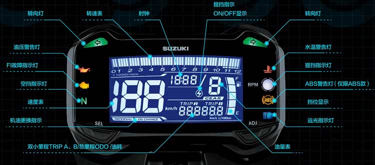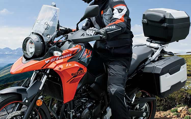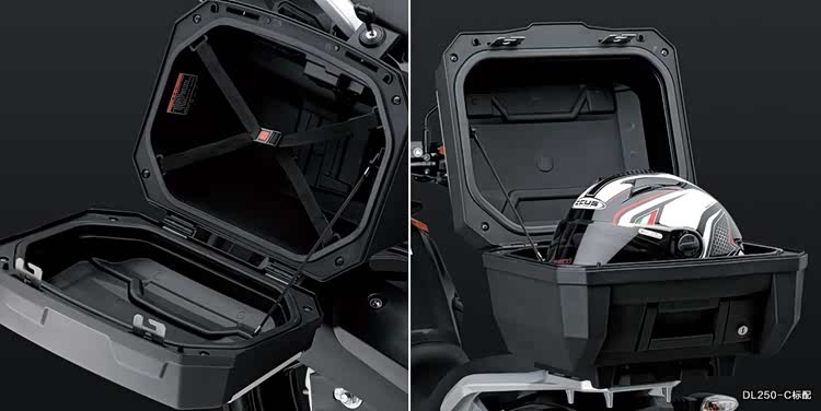 DL250还配备了负显液晶仪表,即使在强光照射下也能保证字体清晰,方便全面掌握行车数据和信息。DL250还引入了汽车级芯片防盗系统,只有使用与内置ECU系统匹配的原装芯片钥匙,才能正常启动,提升了整车的防盗性能。高配的三箱采用尼龙玻纤复合材料,双层结构和铆接工艺,耐磨抗摔防老化!尾箱23L,左右两个边箱各20L,转载能力较强,能满足长途摩旅对空间的要求。