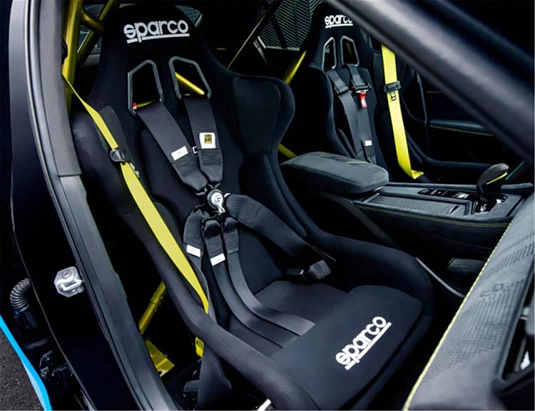 这个大尾翼,妥妥我的菜,可惜年纪大了,感觉驾驭不了了,不过如果觉得这个尾翼只是好看那就错了,车尾设计灵感参考03 Concept Car,三段可调碳纤维大尾翼,“鹅颈式尾翼”造型,兼顾空气动力学。而且为了让运动更彻底,它拥有竞技式宽体,轻量化碳纤维组件(前唇、后视镜、翼子板),采用FIA认证的超轻赛车桶椅,可以后装赛道六点式安全带,同时后排可以后装赛道防滚架,此外更有Akebono卡钳,米其林PS4S高性能轮胎,十段可调Bilstein减震器,流口水没?