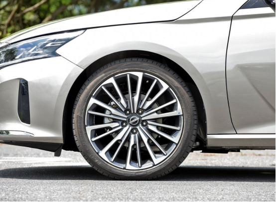 全新天籁还采用了多幅式铝合金轮毂,轮毂尺寸有16英寸、17英寸和19英寸三种,其中配2.0T发动机的车型均为19英寸的轮毂,大尺寸轮毂彰显出其出色的动力性能,同时也增添了车身的运动气息。